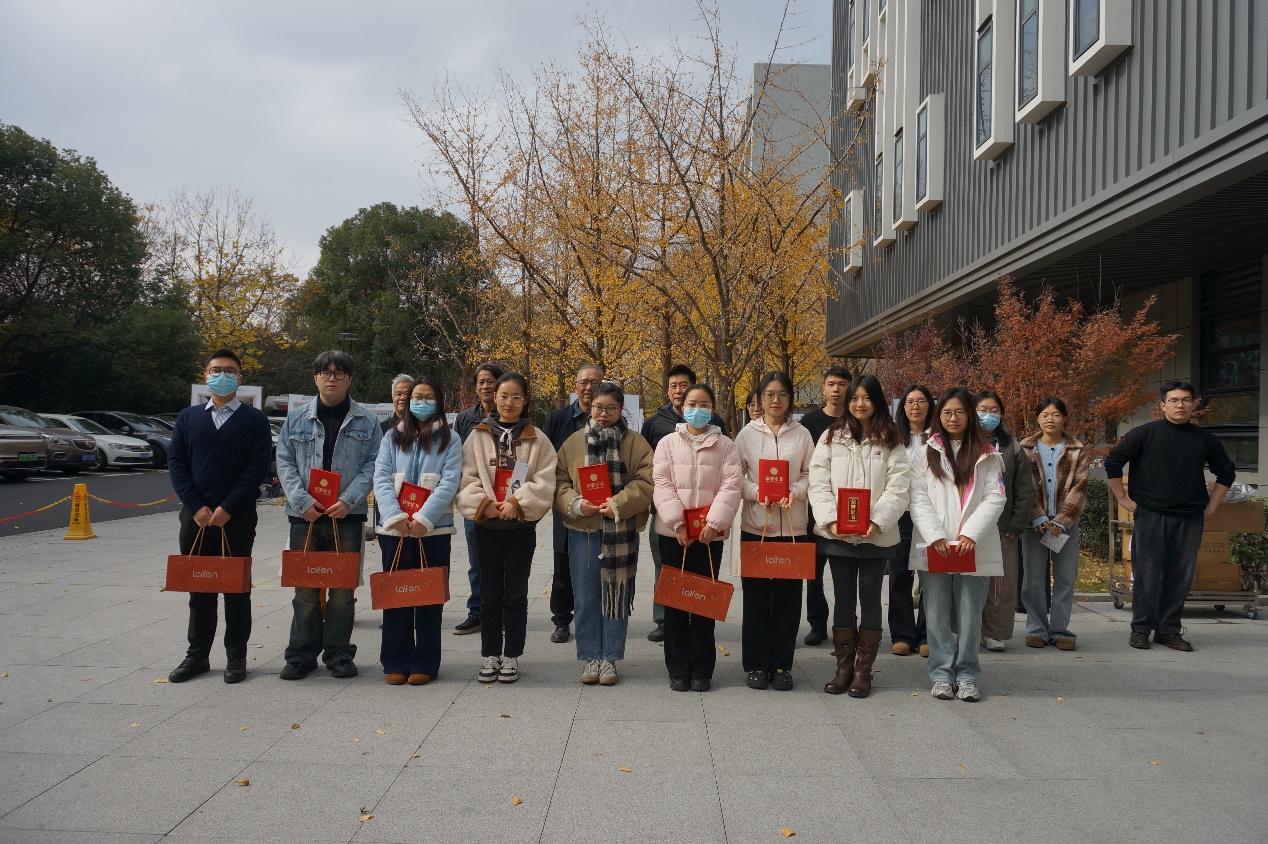 2025年12月12日,在浙江大学实验动物中心东区大楼前,一场充满温情的颁奖仪式正在进行。浙江大学实验室与设备管理处胡凯处长、实验动物中心主任汪洌教授及浙大摄影协会副主席沈华清教授等专家评委们共同为获奖者颁奖并合影留恋,现场掌声阵阵、气氛热烈。一幅幅入围作品吸引了众人目光:它们或捕捉动物灵动的瞬间,或展现科研人员悉心照料的场景,构图与光影之间,流露出对生命的尊重与关怀。
